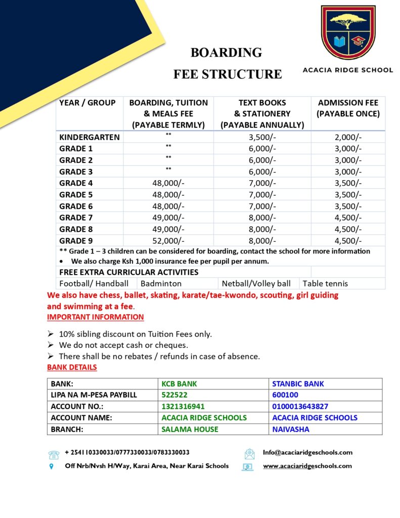 At Acacia Ridge Schools, we are committed to keeping our parents and guardians well-informed. Below, you will find the latest updates to our fee structure and transport routes for the upcoming academic period.